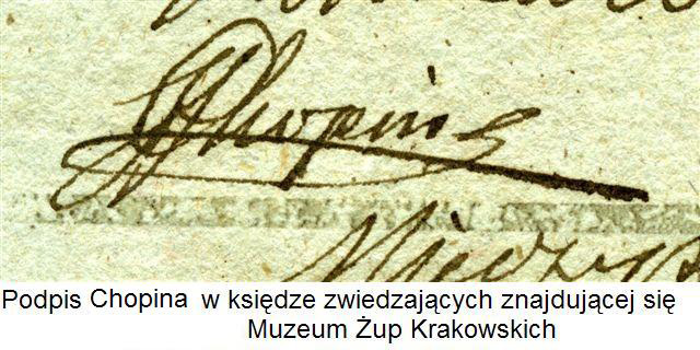 Dla Wieliczki jest istotnym, iż w księdze gości, odwiedzających kopalnię na początku XIX wieku, pod datą 24 lipca 1829 r. istnieje oryginalny podpis Fryderyka Chopina, który właśnie tego dnia, w towarzystwie Romualda Hube, Żegoty Maciejowskiego, Przemysława Brandta i Mieczysława Potockiego, zwiedzał wielicką kopalnię. Oryginał księgi gości z 1829 roku znajduje się w archiwum Muzeum Żup Krakowskich Wieliczka.