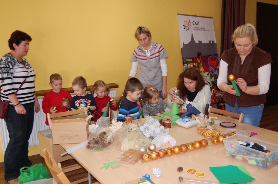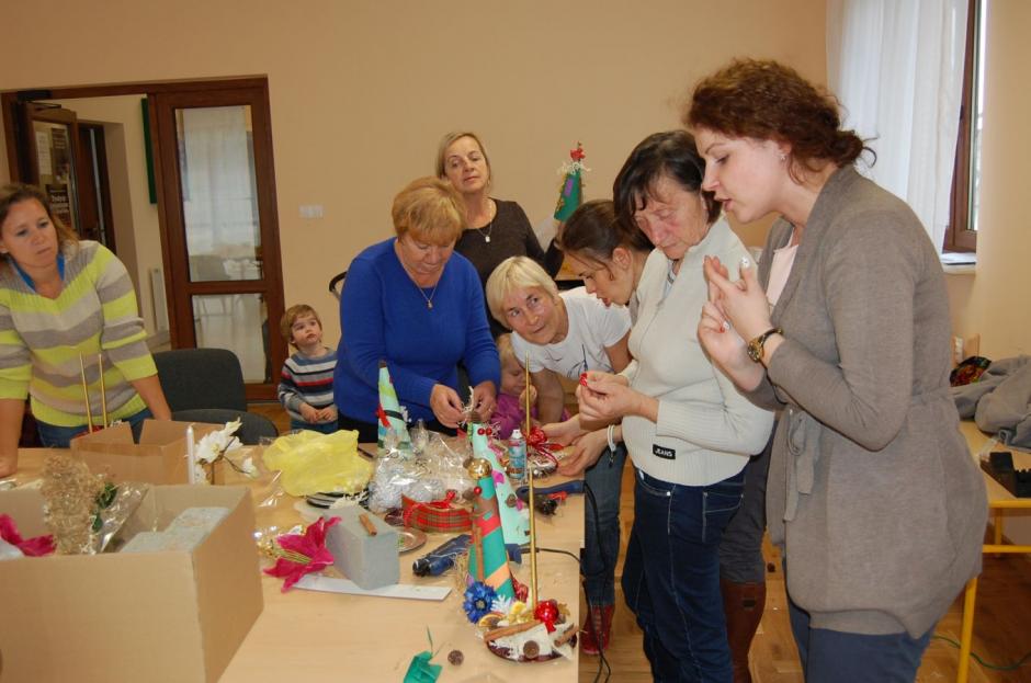Sułkowie i Lednicy Górnej. W ubiegłym tygodniu starsi uczestnicy mogli sprawdzić się w roli florysty i przygotować swój własny stroik na świąteczny stół. W tym samym czasie najmłodsi przygotowywali przepiękne choinki zdobiąc je barwnymi ozdobami.