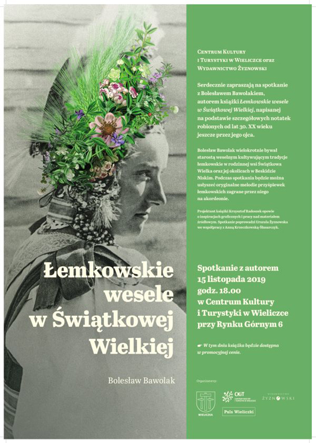 Centrum Kultury i Turystyki w Wieliczce wraz z Wydawnictwem Żyznowscy zapraszają na spotkanie z Bolesławem Bawolakiem, autorem książki „Łemkowskie wesele w Świątkowej Górnej”, napisanej na podstawie notatek sporządzanych od lat 30.tych XX wieku przez jego ojca.
