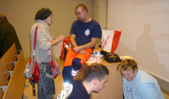 Spotkanie rozpoczęło się od przedstawienia krótkiej historii i działalności Malty Służby Medycznej. Następnie uczestnicy spotkania dowiedzieli się w jakich przypadkach należy wezwać karetkę pogotowia, i jakie czynności należy wykonać na człowieku wymagającym pomocy, aby przywrócić mu prawidłowe czynności życiowe. Omówili sposoby postępowania w przypadku ran, krwotoków, zadławień, omdleń i oparzeń. Ratownicy m.in. zademonstrowali zakładanie opatrunku i opaski uciskowej, sposoby usztywniania kończyn, pozycję boczną bezpieczną, pokazali na „fantomie” jak należy prawidłowo wykonać masaż serca i jak użyć Automatycznego Defibrylatora Zewnętrznego. Na zakończenie każdy z uczestników miał możliwość przeprowadzenia masażu „fantomu” z czego niektórzy skorzystali. Mamy nadzieję, że po poniedziałkowym spotkaniu wieliccy seniorzy nie będą bali się pomagać w sytuacjach i zdarzeniach wymagających szybkiej reakcji i udzielą pierwszej pomocy ratującej życie i zdrowie drugiego człowieka.