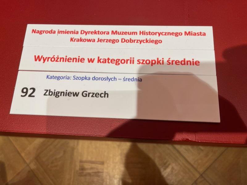 W tegorocznym konkursie Zbigniew Grzech zdobył wyróżnienie w kategorii szopek średnich, a dodatkowo uhonorowano go nagrodą specjalną - Nagrodą im. Jerzego Dobrzyckiego Dyrektora Muzeum Historycznego Miasta Krakowa. To kolejny mocny akcent w jego konkursowym dorobku – w minionym roku wieliczanin stanął na podium, zajmując II miejsce w tej samej kategorii.