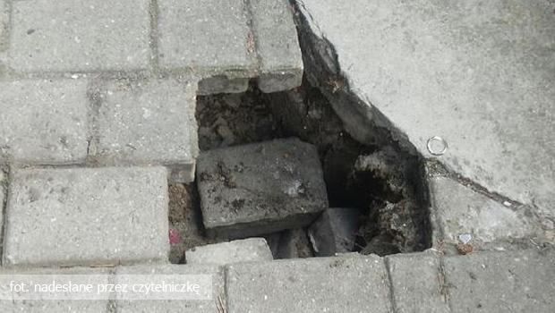 Dostaliśmy dziś zdjęcie oraz informację od czytelniczki, że chodnik łączący ulicę Piłsudskiego z ulicą Długosza i dalej Sienkiewicza znów się zapada. W jednym miejscu powstała dość duża i głęboka dziura. Tego typu problemy na owym trakcie jak pisze czytelniczka pojawiają się wyjątkowo często. Zachowajcie ostrożność.