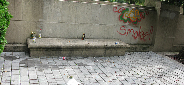 Nie da się nie zauważyć, że na terenie Cmentarza Komunalnego w Wieliczce, a konkretnie przy Grobie Nieznanego Żołnierza odbywają się libacje alkoholowe. Pozostałości po takich „imprezach” odwiedzający cmentarz musza oglądać w środku dnia spacerując alejkami wokół Grobu Nieznanego Żołnierza. Oprócz tego Jak niestety widać komuś nie wystarczyło samo urządzenie libacji w świętym miejscu jakim niewątpliwie jest cmentarz i musiał zostawić po sobie ślad jakim jest widoczne na zdjęciu graffiti.